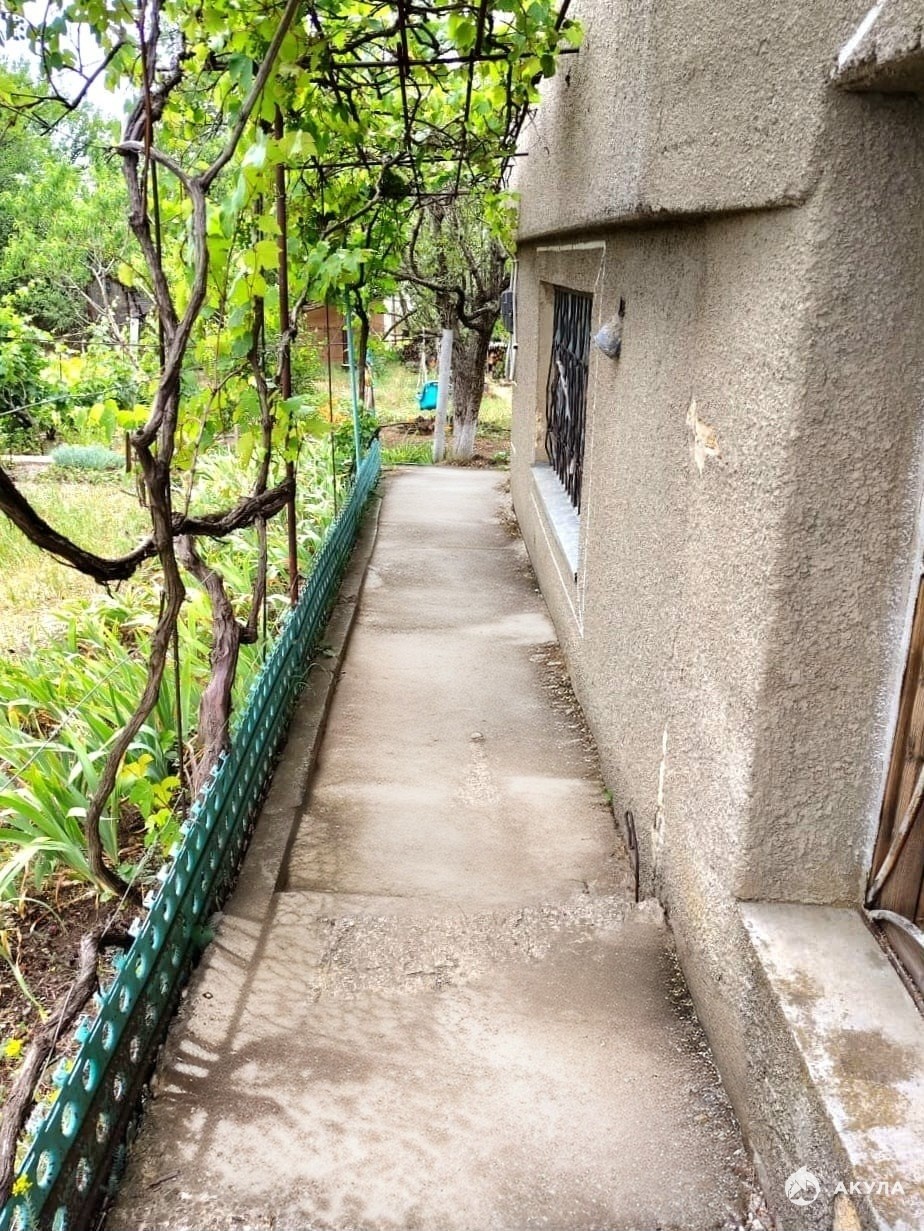 Участок ухоженный, просторный и огороженный. На нем растут плодовые деревья, виноград и декоративные растения.