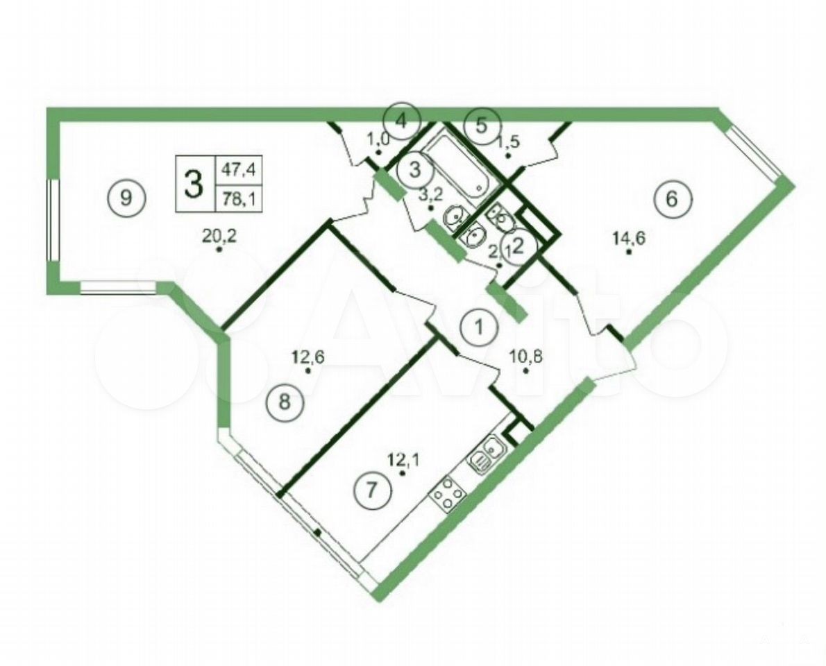- 47,4 м²