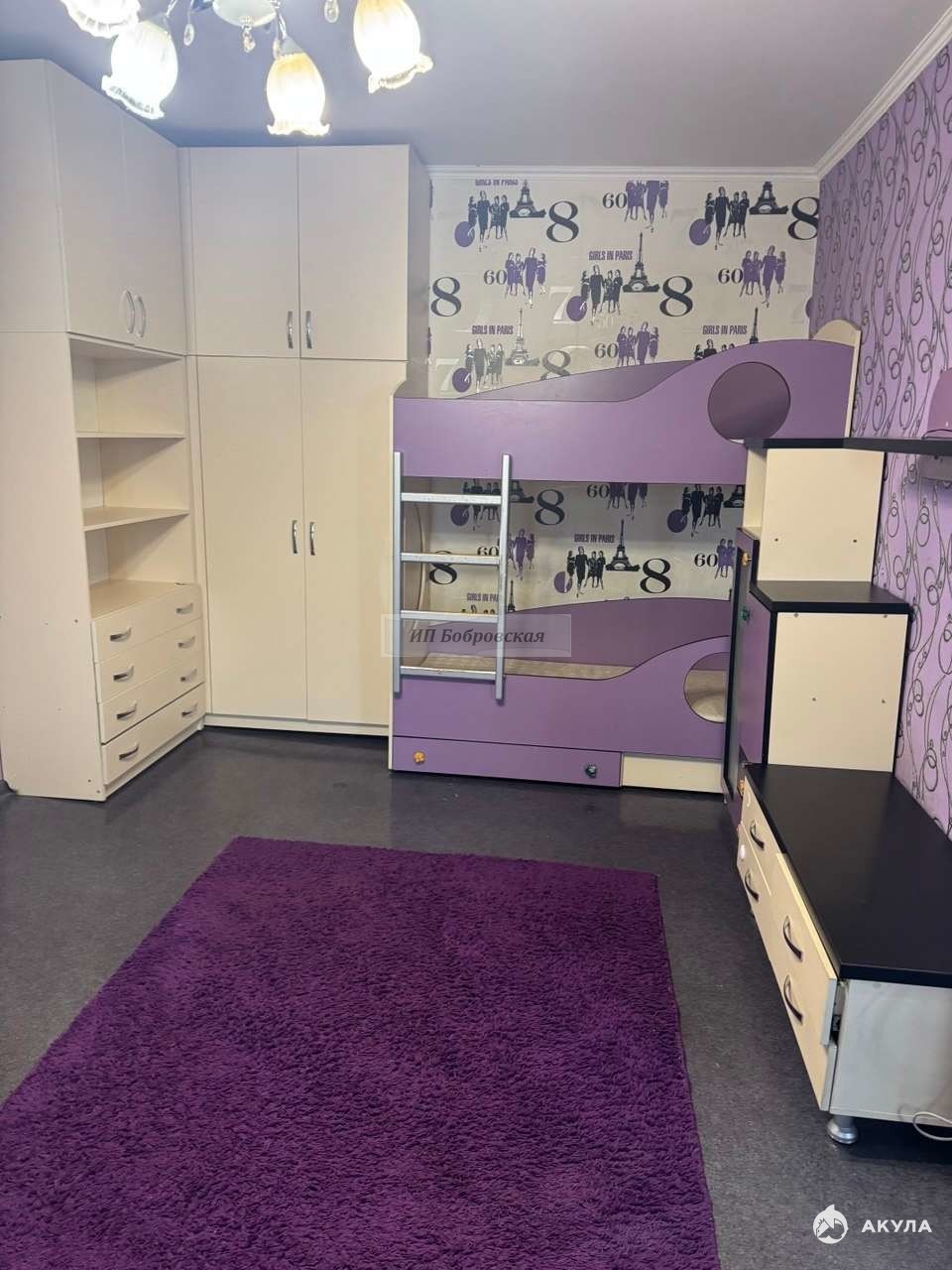 Квартира расположена на 8/9 эт дома. Ремонт в квартире косметический, мебель и техника присутствует : диван, двухъярусная детская кровать, шкаф, кухонный гарнитур, телевизор, холодильник, микроволновка, стиральная машина, бойлер. Балкон застеклен.